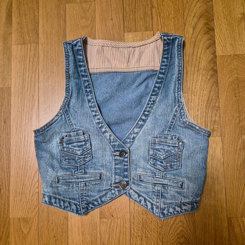 Vaalean sinistä pehmeää farkku kangasta 100% puuvillaa farkku liivi, jossa pieniä beige/ruskean sävyisiä kukkia . Edessä pienet rintataskut napeilla. Merkki Blue seven girls 158-164cm. Pidetty parempana liivinä, pesty pari kertaa hajuttomalla pesuaineella. Meillä ei eläimiä