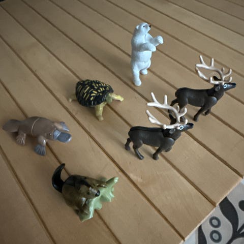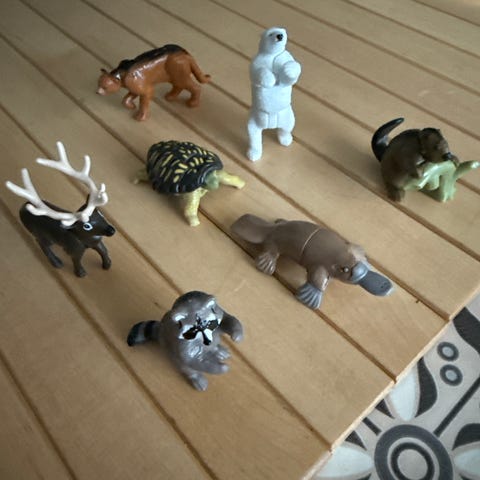 Kuvan setti kinder-munien eläimiä.