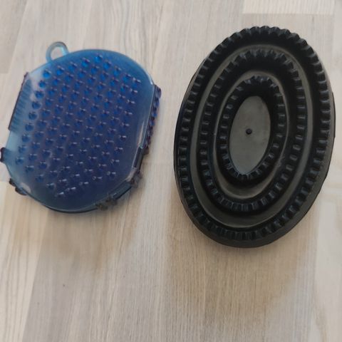 Kaksi koiran harjana käytettyä kumisukaa.