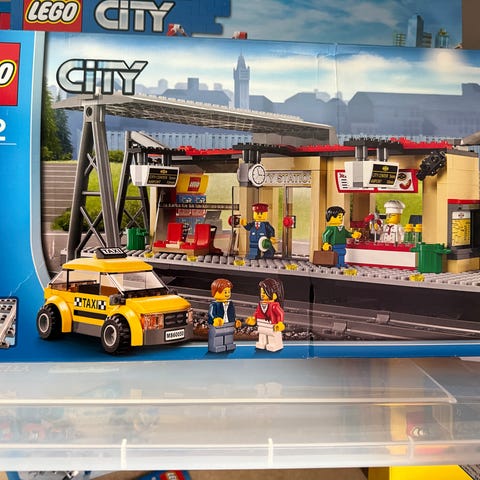 Lego rautatieasema, kaikki palat ja ohjeet tallella. Sisältyy viisi figuuria ja auto sekä peräkärry. Kuljetus pääkaupunkiseudulla onnistuu.
