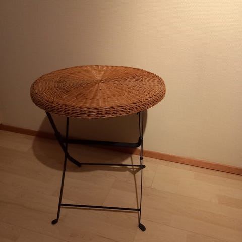 Kaksi rimoista tehtyä pyöreitä pöytiä desinkki by Rami. Korkeus 630mmx halkaisija 450mm, korkeus 520x halkaisija 320, mustan sävyisiä ei löydy samanlaisia. 50E kpl. Tarvittaessa kännyyn kuvia.