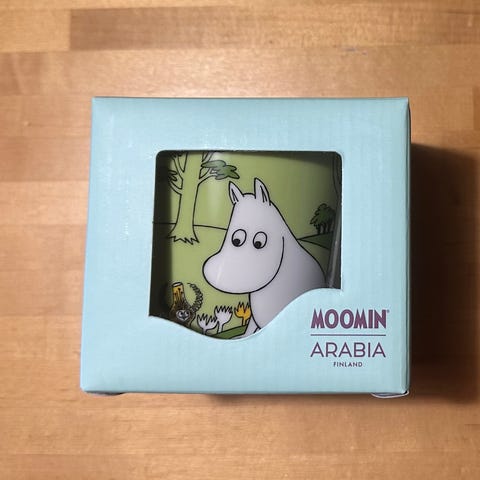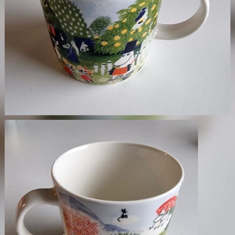 Ihana Muumitalo Muumimuki. Muumitalo-muki on Muumien 70-vuotisjuhlavuoden kunniaksi julkaistuista mukeista ensimmäinen. Mukin kuvitus pohjautuu tarinaan ”Kuka asuu Muumitalossa”, ja senpä vuoksi ikkunoissa sekä talon ulkopuolella on rakastetuista muumihahmoista yksi jos toinenkin.