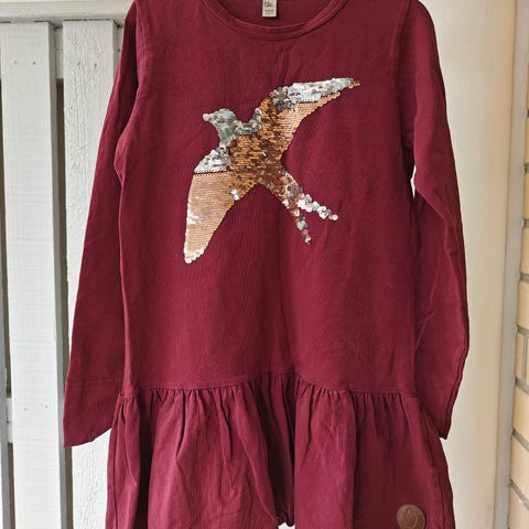 Blaa lintu kuvioinen mekko tai tunika kokoa 134. Vastaa kokoaan.