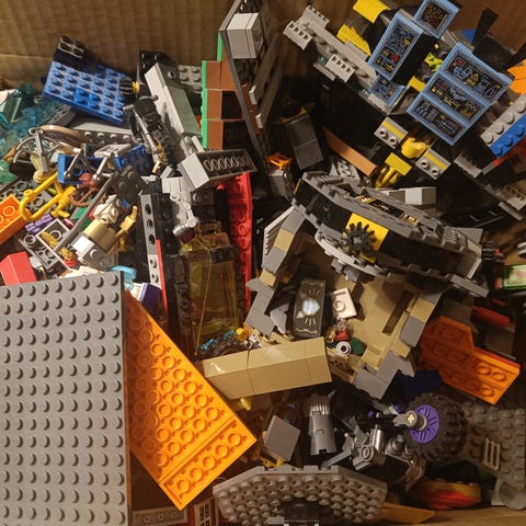 Myynnissä pussillinen legoja. Voit rakentaa autoja, mukana tulee leluihmisiä etc.