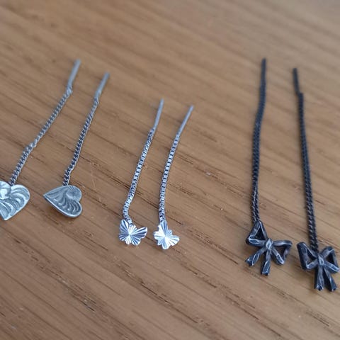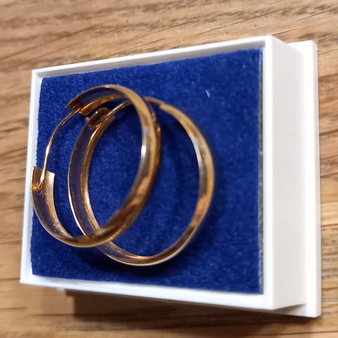 Kultakeskuksen jämäkät hopeiset korvakorut, joiden korkeus on noin 4 cm. Leimat Kultakeskuksen leijona ja 925.