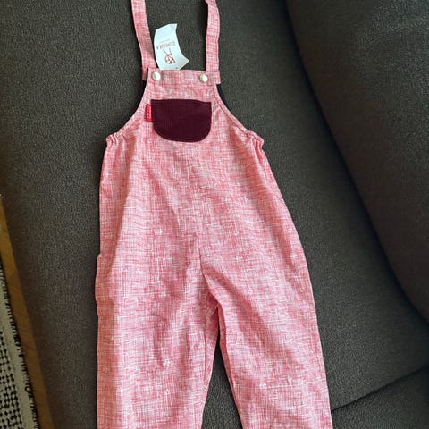 Myydään ihana farkku lappuhaalari kokoa 86. Viimeisessä kuvassa väri näkyy parhaiten.