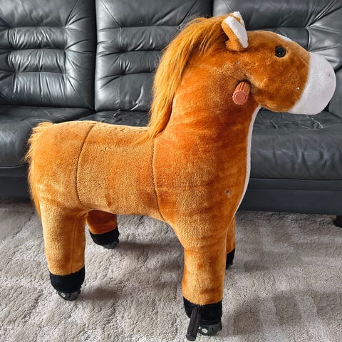 Ehjä ja mekaanisesti toimiva ratsastettava leluseepra vailla uutta ratsastajaa.
