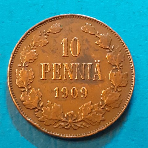 10 pennin keräilykolikko, vuodelta 1905, Kuparia, halkaisija 30 mm, hyväkuntoinen