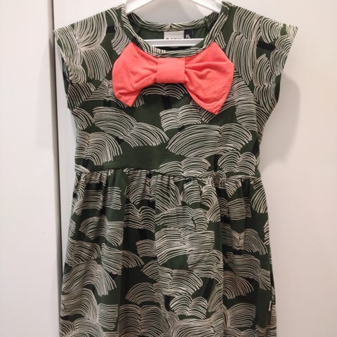 Papu hihaton mekko, keltainen rusetti olkapäällä. Koko 86/92.