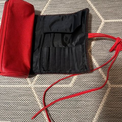 Musta Meikkipussi, suulla vetoketju, kanto kahva, kork.11.5 cm, pituus 18 ja leveys 13 cm, uusi.