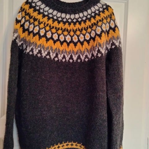 Islantilainen villapaita käsinkudottu koko kai-kai 55 cm hiha kai 50cm. Lettlopi langasta.