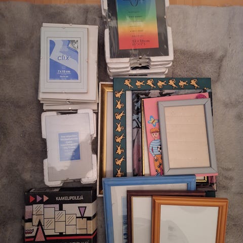 2 kpl isoja muovisia kehyksiä. koko noin 74x54cm. Molemmissa ripustus koukut joiden paikan voi itse päättää. Yhteensä 5e käteismaksu ja vain nouto.