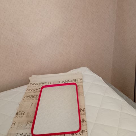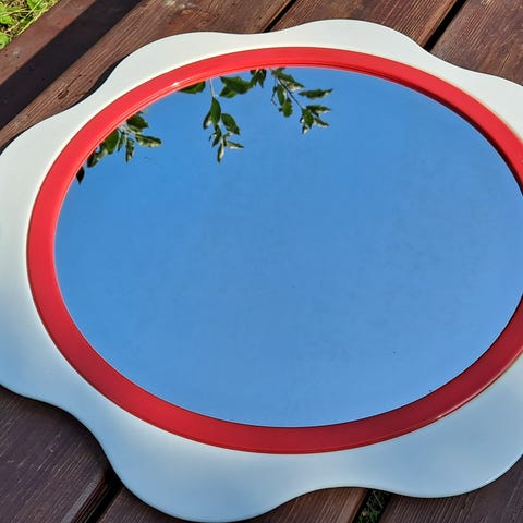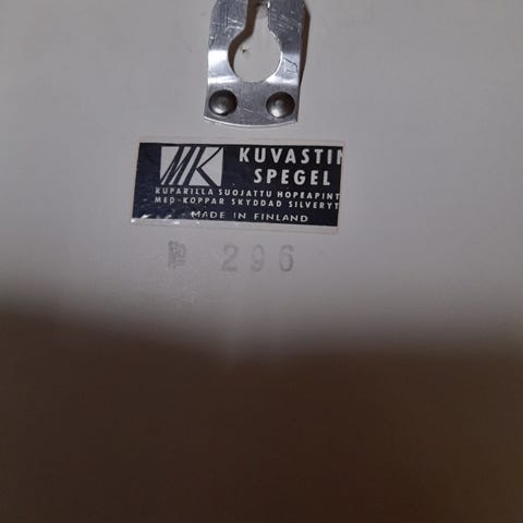 Hyvässä kunnossa oleva sinivalkoinen Mäkisen kuvastin Oy kukkapeili. Ajoittain onnistuu kuljetus Helsinkiin Oulunkylään.