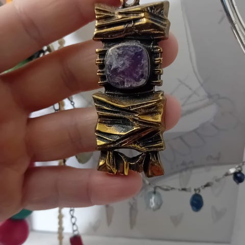 Pronssinen kaulakoru ja rannerengas. Kivi on ametisti. Kunto on moitteeton lukitusten ym.osalta. Ostaja maksaa postituksen. Yhteishinta. Voidaan ostaa myös erikseen. Hinta 80/ kpl.