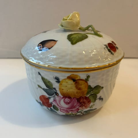 Vintage unkarilainen kannellinen posliinikulho Herend 6031/Eton käsinmaalattu kukkaaihe eli kukkia maalattuna.