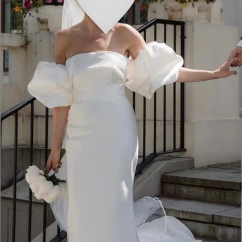 Myydään ihana Eddy K:n Minnie hääpuku (EK1381). Väri Ivory ja koko 10. Kangas laskeutuvaa kreppikangasta. Syvä kaula-aukko edessä ja takaosa myös avonainen. Kapeat olkaimet, joihin ompelijalla teetetty kevyet hihat. Hihat saa ompelijalla pois. Takana vetoketjukiinnitys, jonka päällä koristenapitus. Pitkä ja upea laahus, jonka kanssa helppo liikkua. Puvusta löytyvät myös huomaamattomat taskut. Puku pesetetty heti häiden jälkeen (2022). Nyt säilytyksessä pukupussissa.