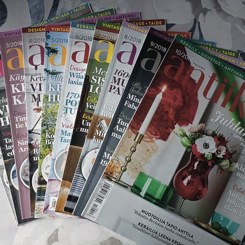 Antiikki & Design- aikakausilehti, 6 kappaletta. Numerot 5-10/ 2019. Siistikuntoiset, kertaalleen luetut. Yhden lehden ovh 12,50 euroa.