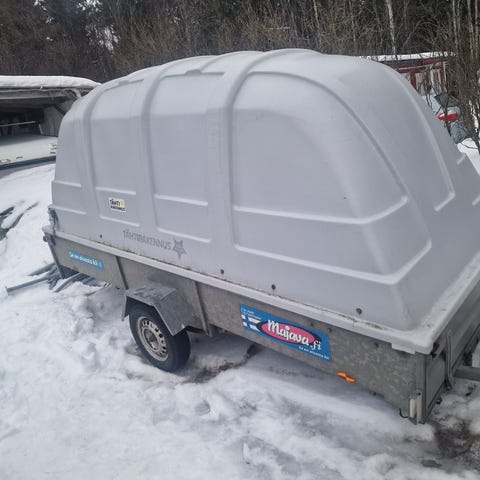 Majava M 5032 peräkärryn kuomu ,saranat ja lukot. Kuomussa 3 ratkeamaa ,jotka korjaamalla saa kuomun kuntoon.