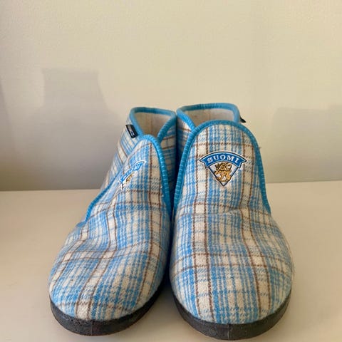 En tiedä valmistajaa, mutta vanhat nuo on. Aika hyvässä kunnossa kuitenkin. Noissa näkyy olevan lukitussysteemikin. Koko merkitty pohjaan (40), mutta kun itse kokeilin 43 numeron jalalla hyvin sopi.