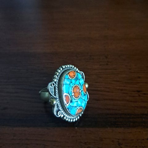 Myydään kaunis vintage-henkinen sormus. Muovia. Hyvässä kunnossa, rengas on säädettävä.