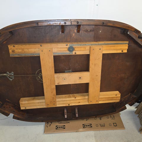 Mukaan kuuluu sekä pöytä, että sen jatko-osa.