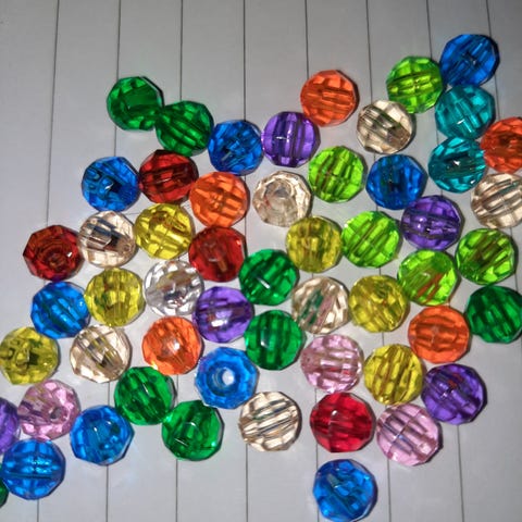 Erivärisiä karkki helmiä. Näitä 8 kpl. Soveltuu askarteluun ja koruntekoon. Kivoja yksityiskohtia tai näistä saa kivat korvakorut.