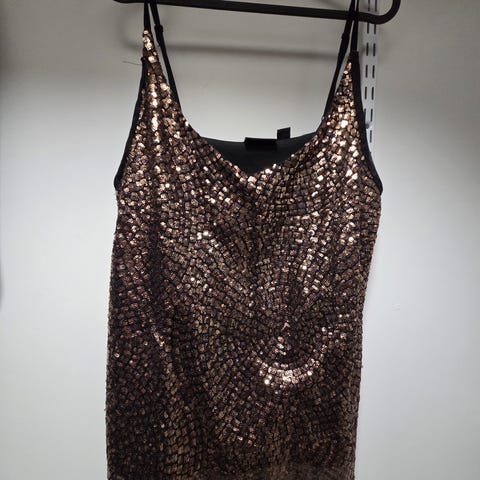 Paljettipaita, hihaton paita. Värit musta ja kulta. Tähtikuvio. Koko S, vastaa kokoa XS / S, 36 / 38.