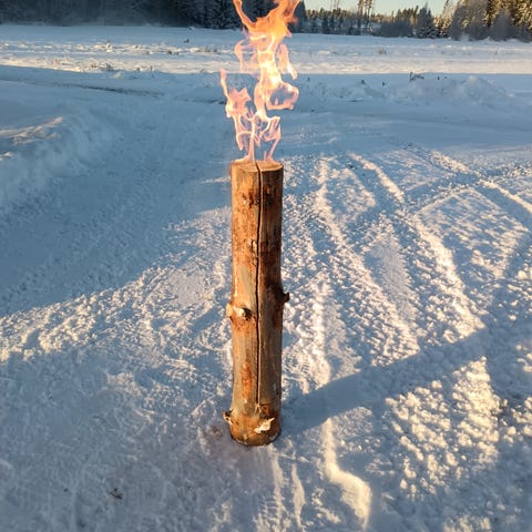 Jätkänkynttilöitä eri kokoisia ja puu istuin palleja