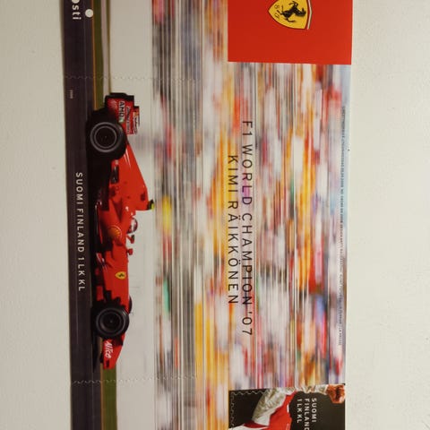 Postimerkkiarkit: Mika Häkkinen World Champion 1998 hinta 9e. Kimi Räikkönen World Champion 2007 hinta 9e