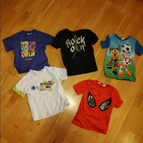 Myydään lasten T-paitoja yhden lapsen jäljiltä.