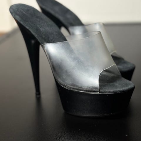 Läpinäkyvää muovia ja strassikuviota.
