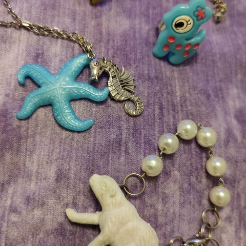Kolmannen silmän puodista toissavuonna ostettuja koruja.