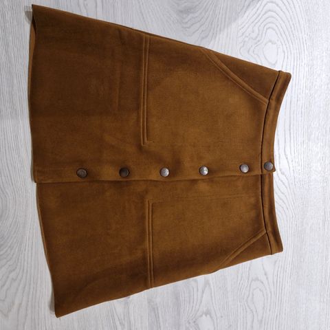 Kuin uusi vuorellinen konjakinruskea Mokkanahkahame. Mitat vyötärö 74 cm ja vyötärö-helma 66 cm.