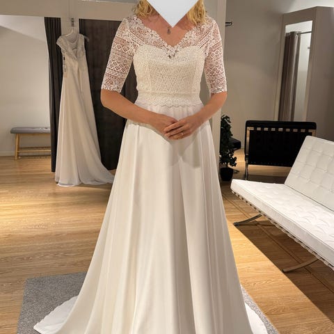 Uutena v. 2022 ostettu hääpuku. Ollut 165 cm pitkällä morsiammella ja noin 8 cm korot. Pesetetty ja kunto on erinomainen. Ostohinta 850€. Voi tulla sovittamaan Vantaanpuistoon.