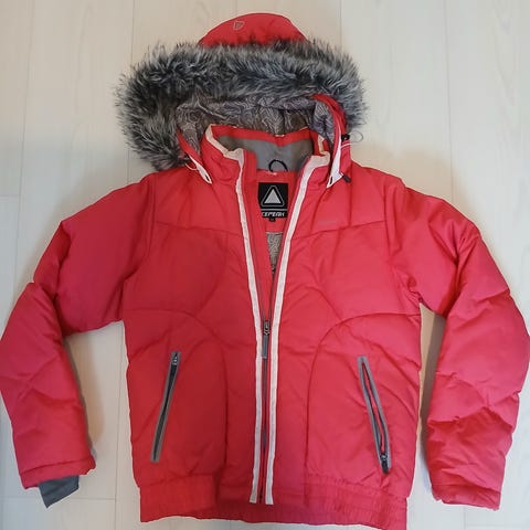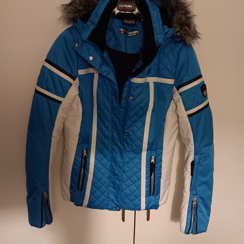 Todella lämmin Icepeak-merkin toppatakki koko 38. Tarkoitettu ilmeisesti lasketteluun tms. kun löytyy lumilukot hihoissa sekä vyötäröllä. Materiaalilapun mukaan sisälmyksessä untuvaa ja höyhentä, tätä en ollut itse huomannut aikaisemmin.