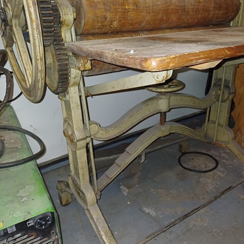 Kaunis valurautainen 100 vuotta vanha antiikki mankeli.