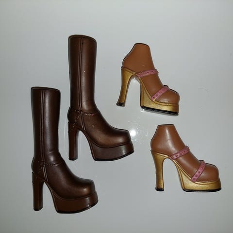 Kenkiä Bratz-nukeille. Neljä erilaista kenkäparia. Joitakin pieniä käytön jälkiä saattaa olla.