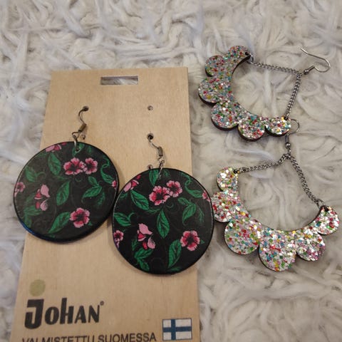 Käyttämättömät korvikset maalattua puuta. Kevyet.
