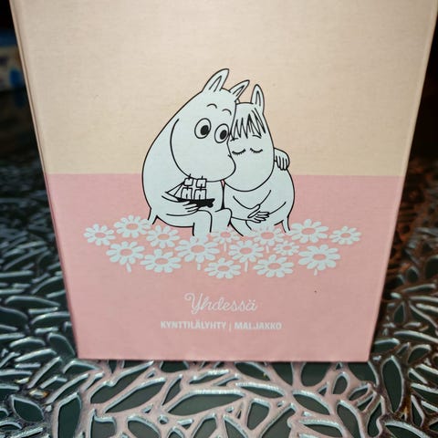 Kolme sinistä lyhtyä erilaisilla Muumi-heijasteilla: PikkuMyy, Muumeja ja Muumeja + Muumien talo. Yhteensä 20 €.