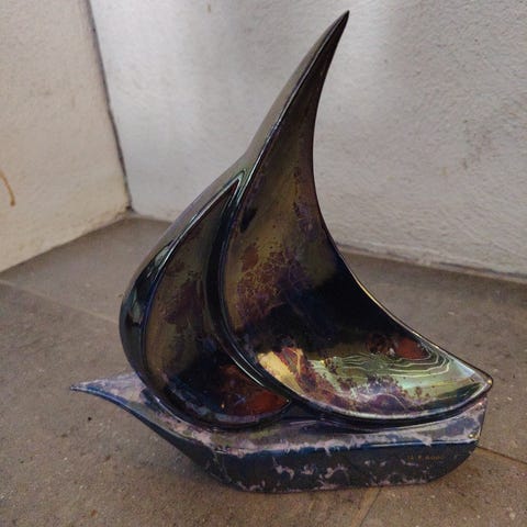 Lasinen (tuntuu ja näyttää lasimassalta) purjevene