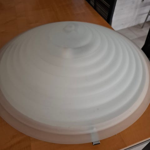 On kahdella polttimolla, sekä kahdella kuvulla, kuviollinen 45cm ja valkoinen 50cm.
