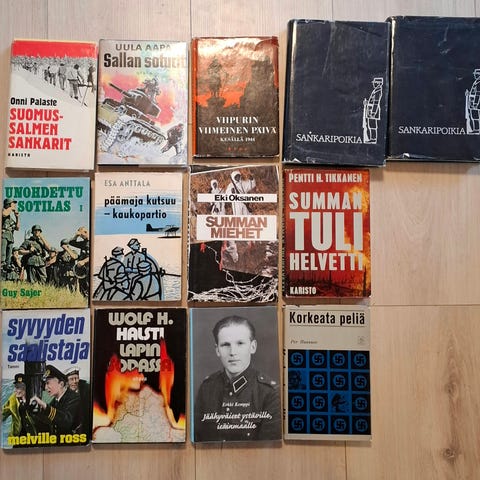 Monen eri tekijän kirjoja runsaasti. Myydään esim 50 kpl hintaan 100€. Postikulut ostajalle tai kulkee omien menojen mukaan..