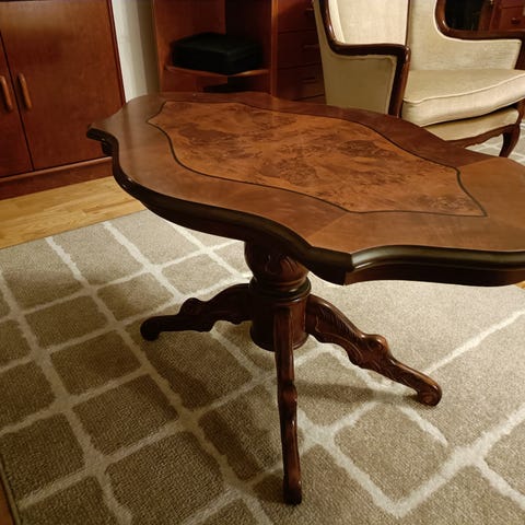 Rokokoo sohvaryhmä: sohva, 1 nojatuoli ja kuusi (6) pienempää tuolia + pöytä. Sohvaryhmä on siistissä kunnossa, kauniit kaiverrukset.
