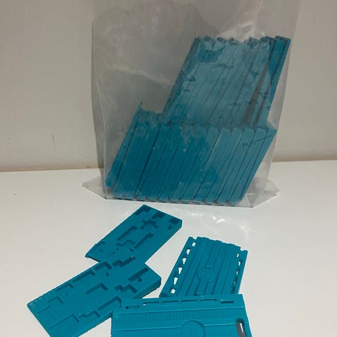 Kuistin lattialautojen piilokiinnytykseen. Kaksi ja puoli pussillista. Ostettu K-raudasta.