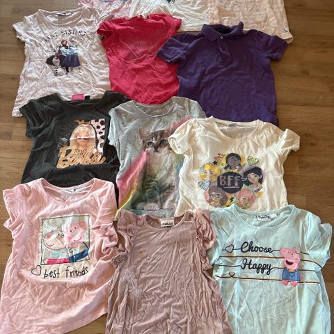 T-paitoja koko 116 + pitkähihainen paita 120