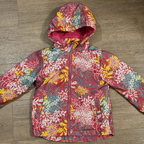 Beigenharmaa-sini sävyinen välikausitakki 120cm.