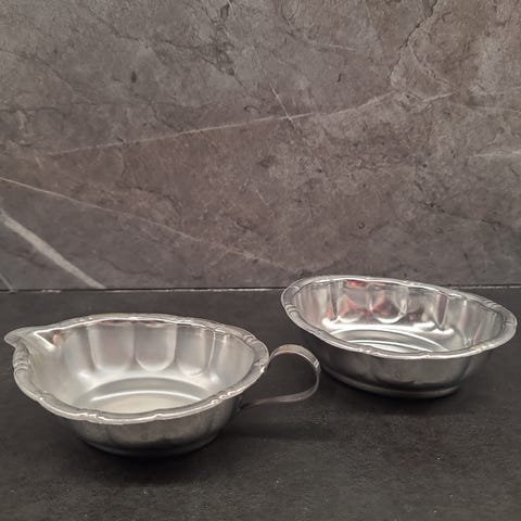 Myydään hyväkuntoiset 1950-luvun käsinmaalatut sokerikko ja kermakko. Sokerikon korkeus 3 cm ja kermakon korkeus 6 cm.