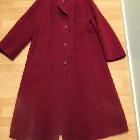 Pitkä villakangastakki (vintage )jossa irroitettava karvakaulus ( takin merkki etcetera)