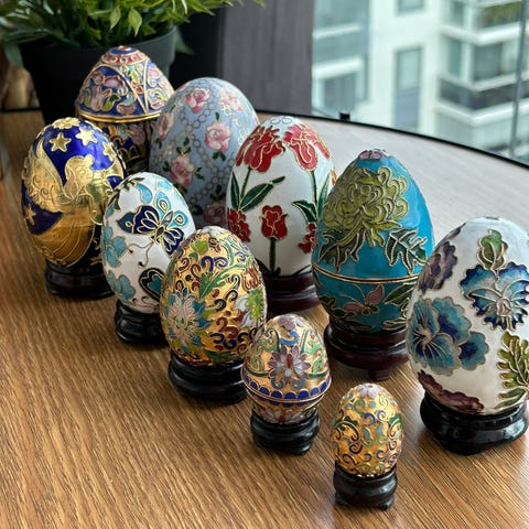 Cloisonné cover bowl in finely enamelled brass and decorated with dense floral motifs and scrollwork. Cloisonné is an ancient technique of decorating metal objects with colored material held in place or separated by metal strips or wire, usually gold. Condition: very good, no chips, no repairs. (Please see all photos, they are part of the description, please consider the age) It can be picked up Turku or Tori diili.