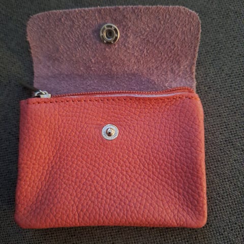 Uusi Käyttämätön Mokkanahkainen Kolikkopussi. Koko:Leveys: 10,2 cm Korkeus:7,8 cm